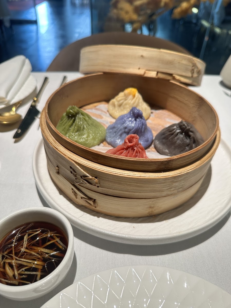 Excellent food, especially the savory dishes. Each of the five flavor soup dumplings had a unique and intense flavor, and they were quite plump. The passion fruit prawns were perfectly cooked and delicious. The veggies in curry all kept their intense flavor, the curry was addictive, and the scallion pancake was crispy and very enjoyable. The cheesecake for dessert was good, but unremarkable, in fact the sauce was a bit too sweet and took away from the cheese. The staff was very attentive, and the decoration is simple but very pleasant.